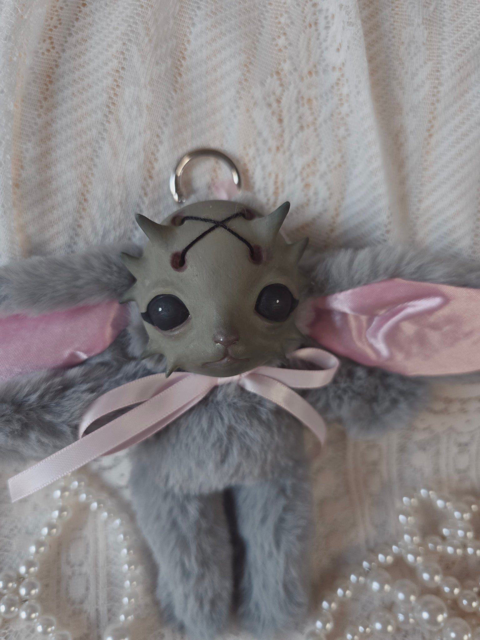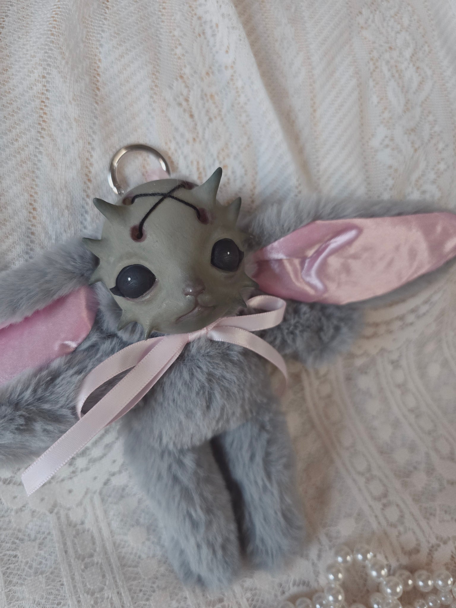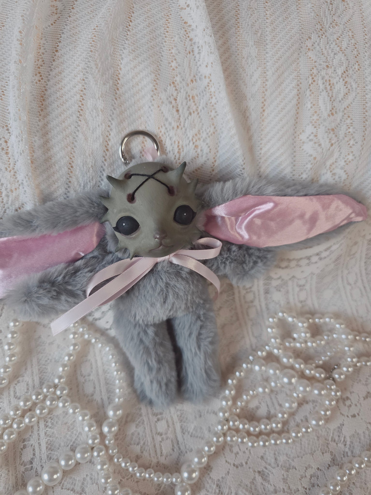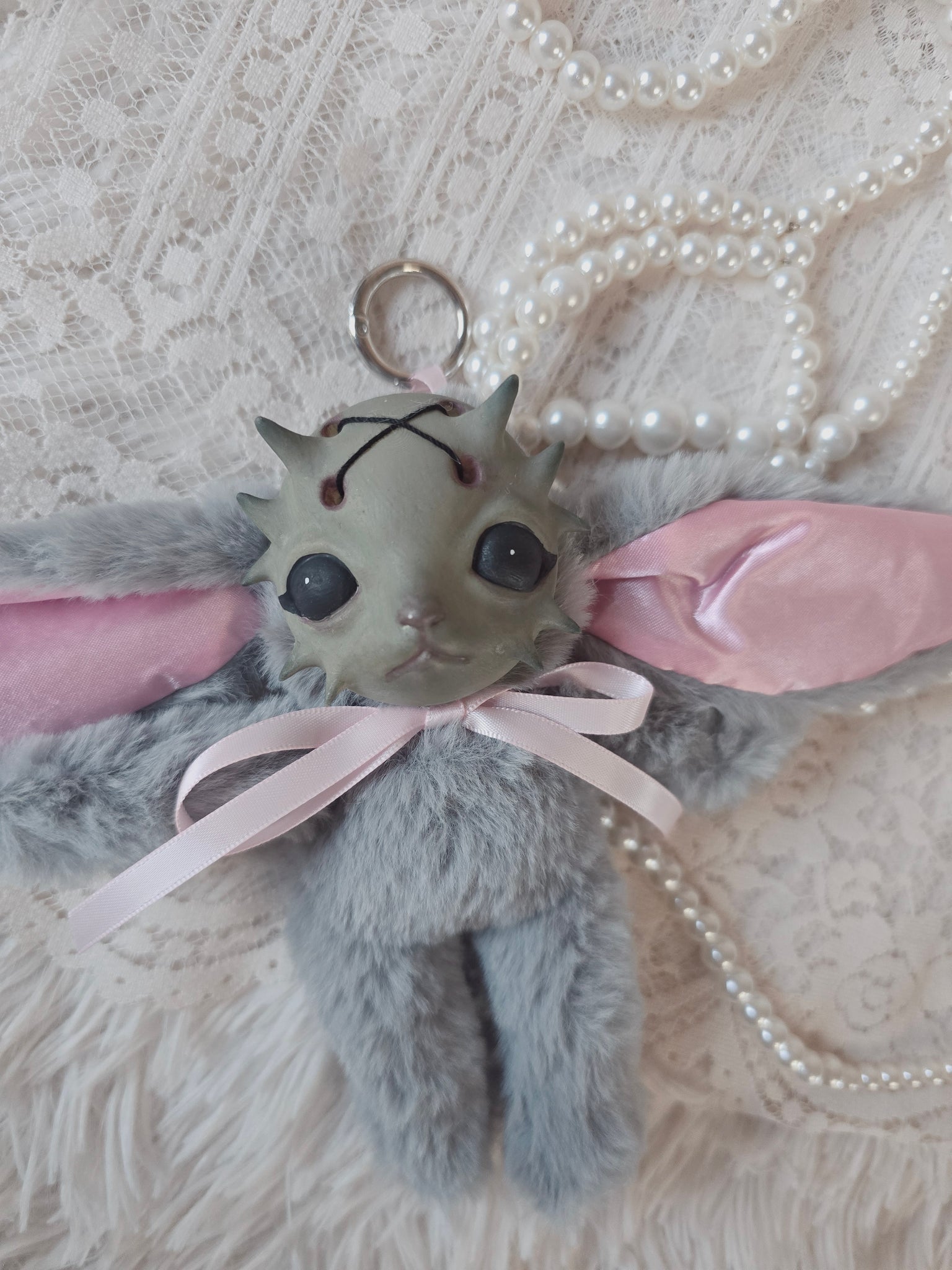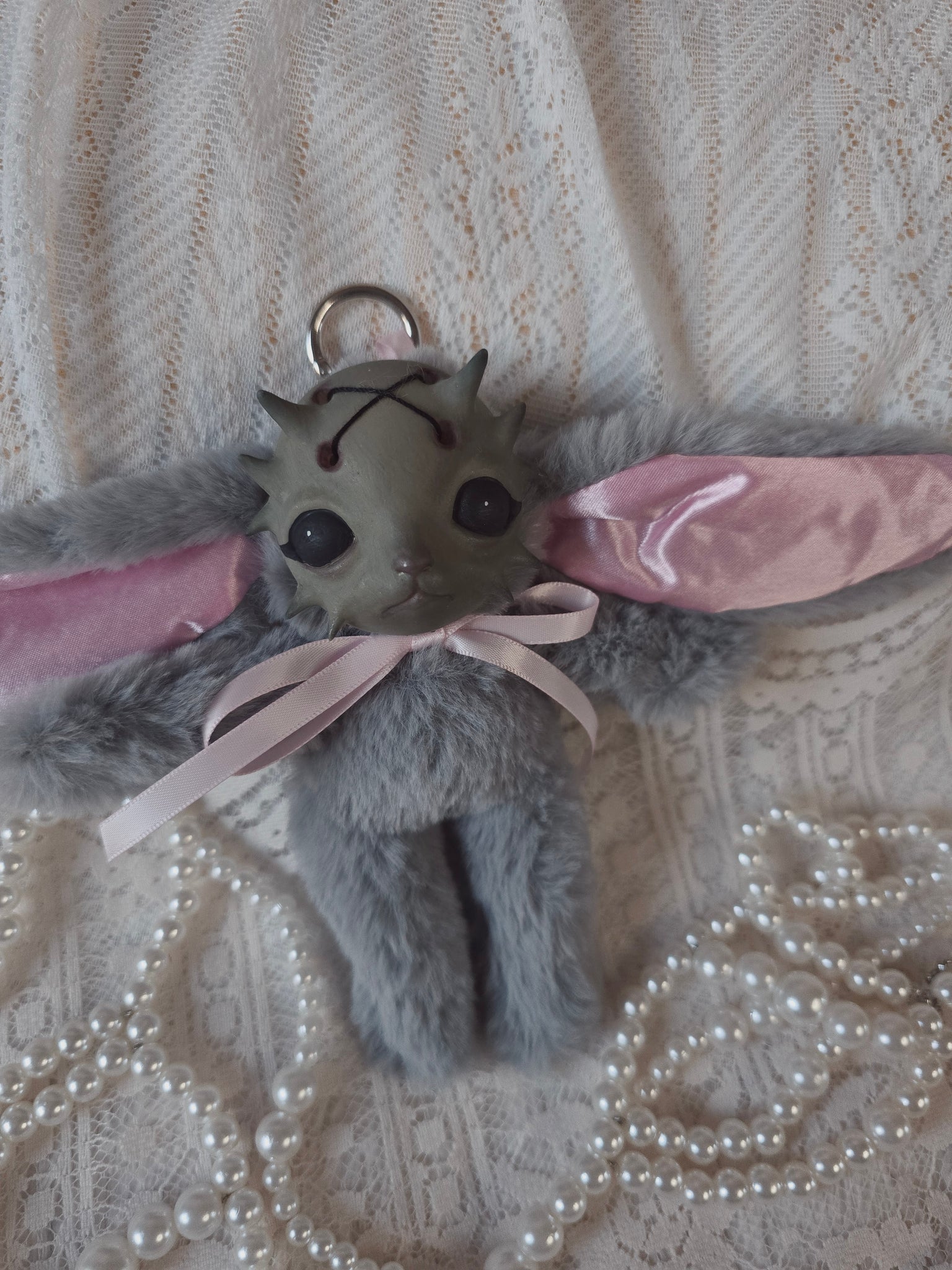 Fluffy Grey Dust Bunni 'Meep' bag charm โ™ก