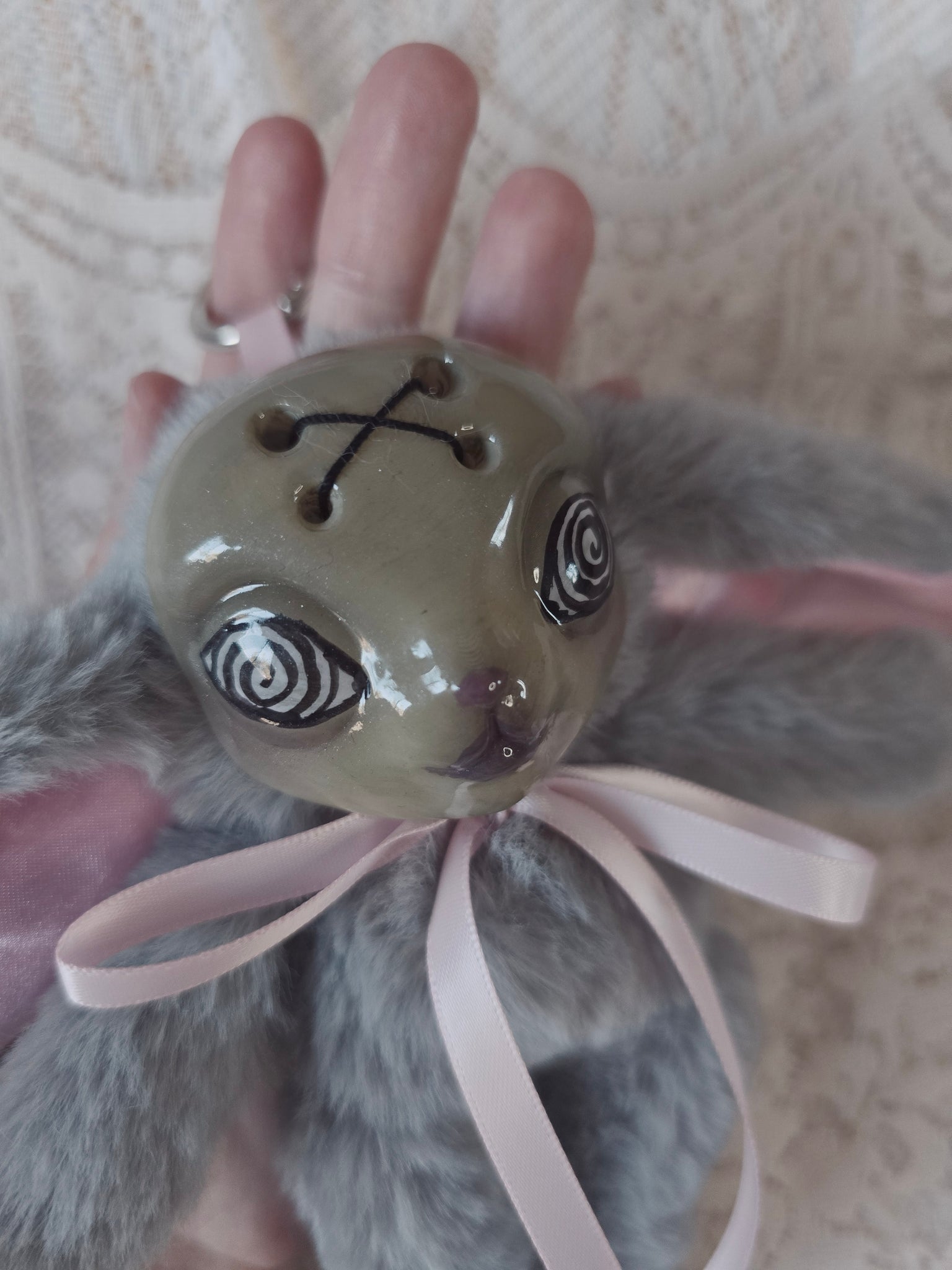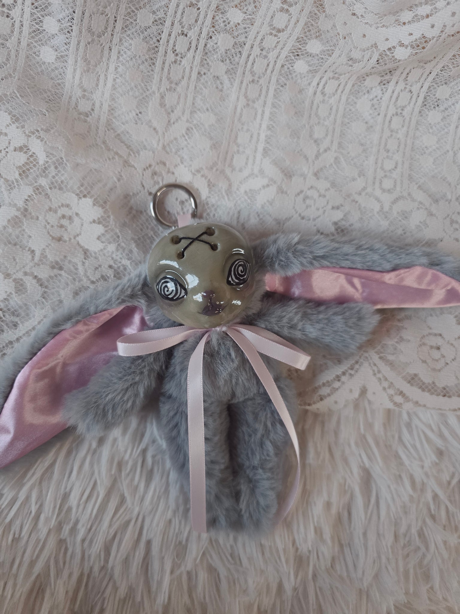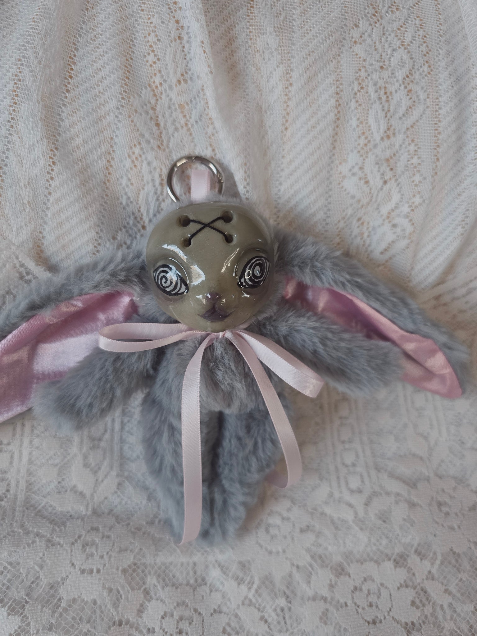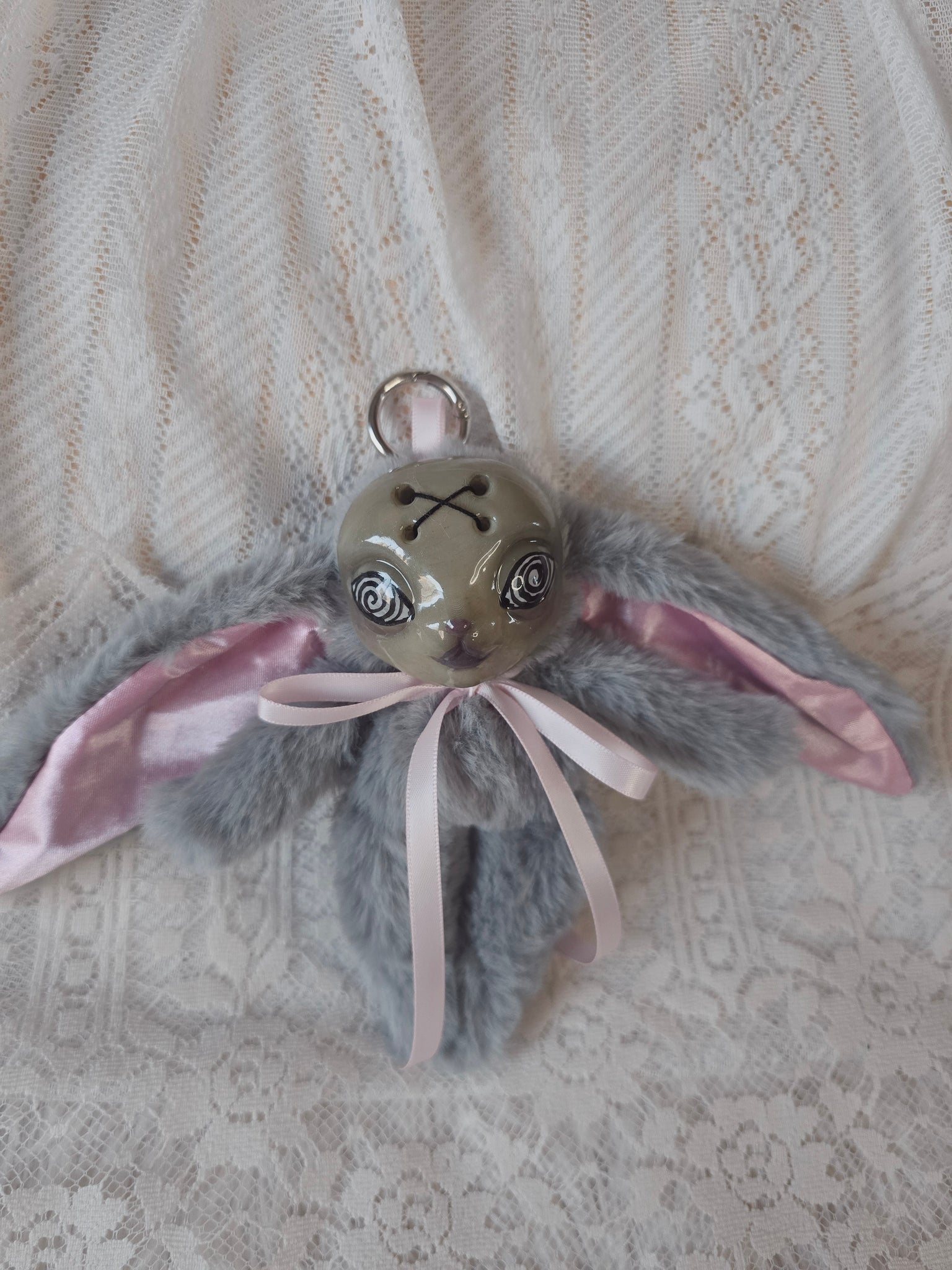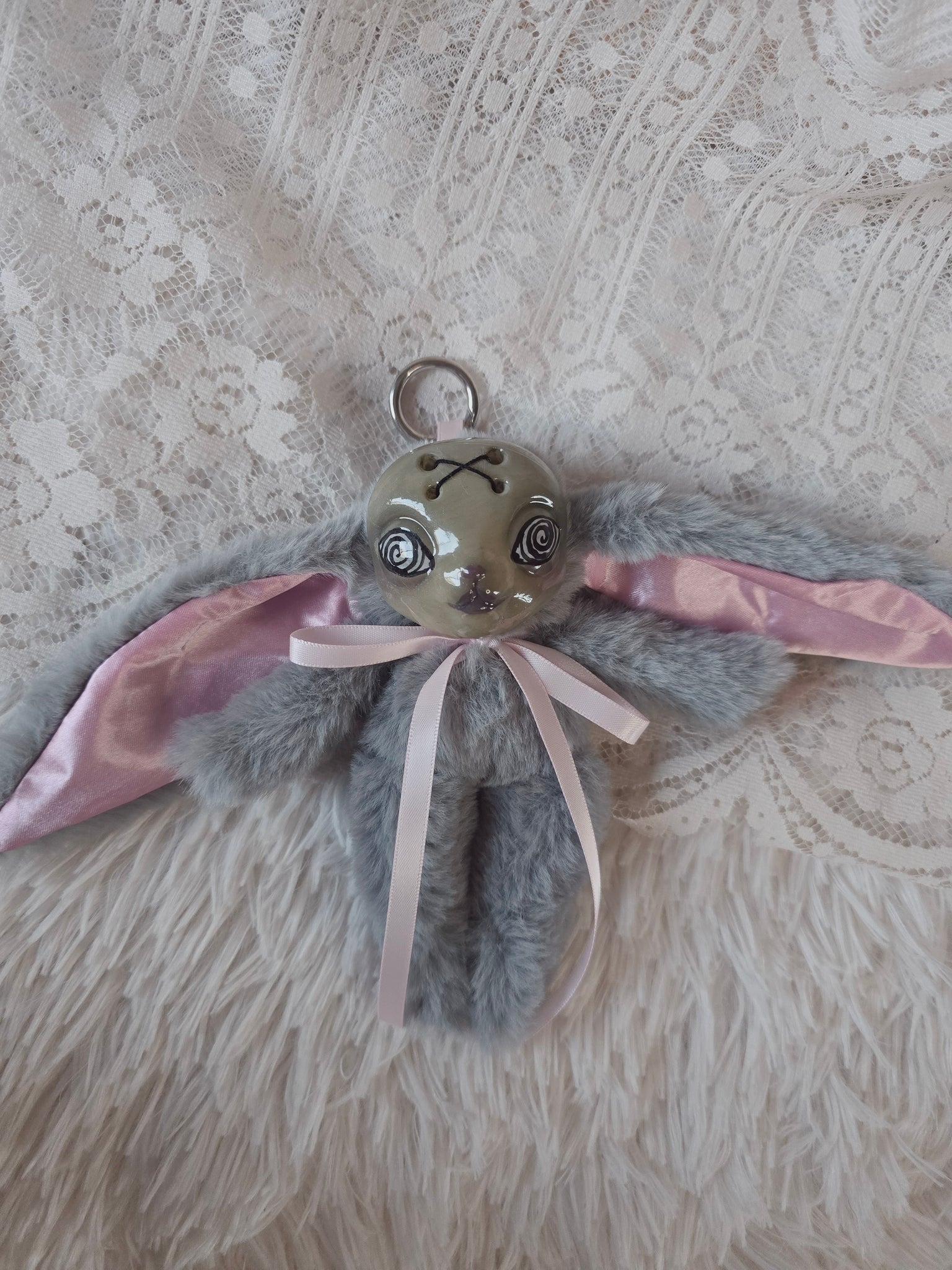 Fluffy Grey Dust Bunni 'Meep' bag charm โ™ก