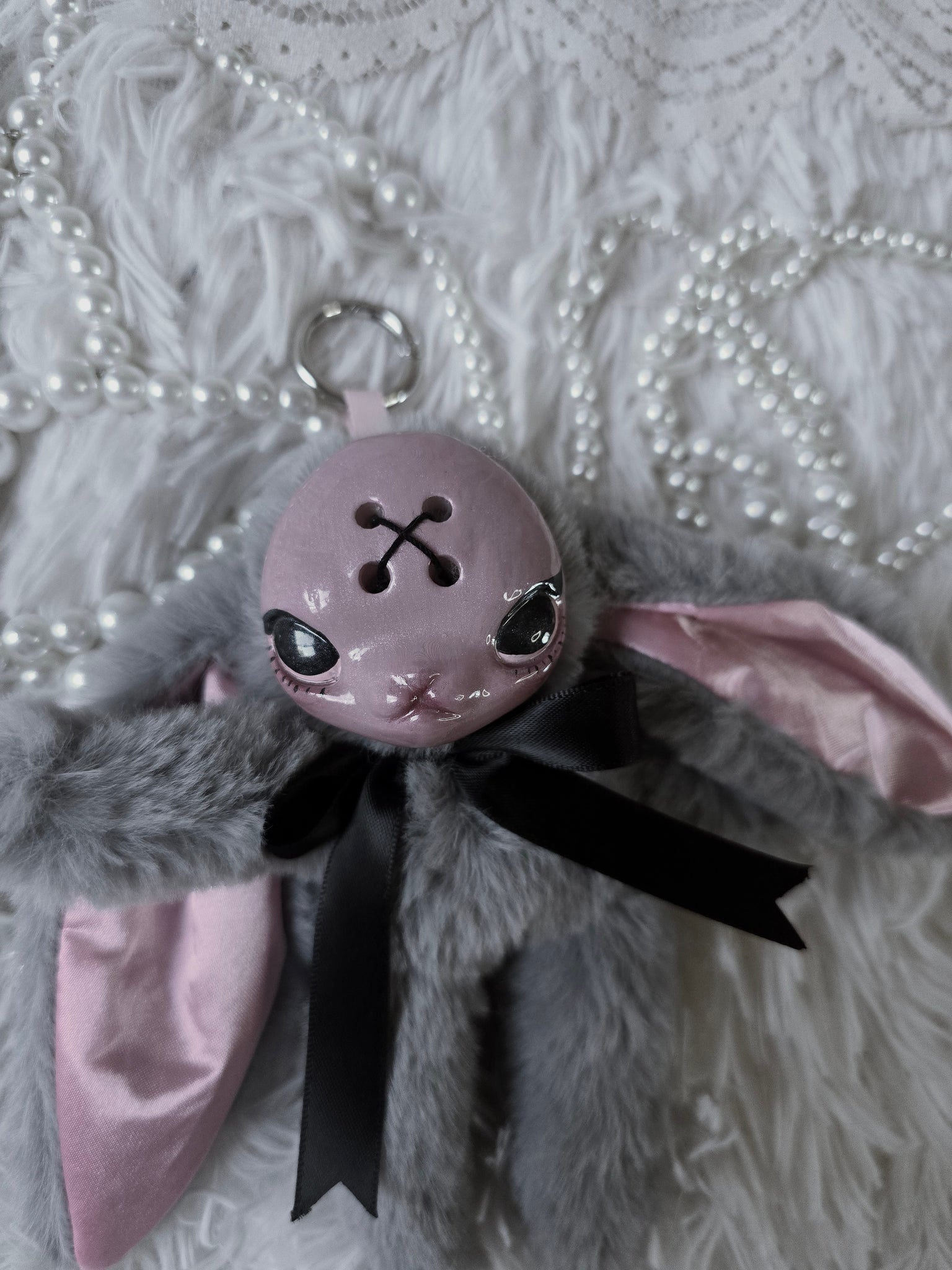Fluffy Grey Dust Bunni 'Meep' bag charm โ™ก