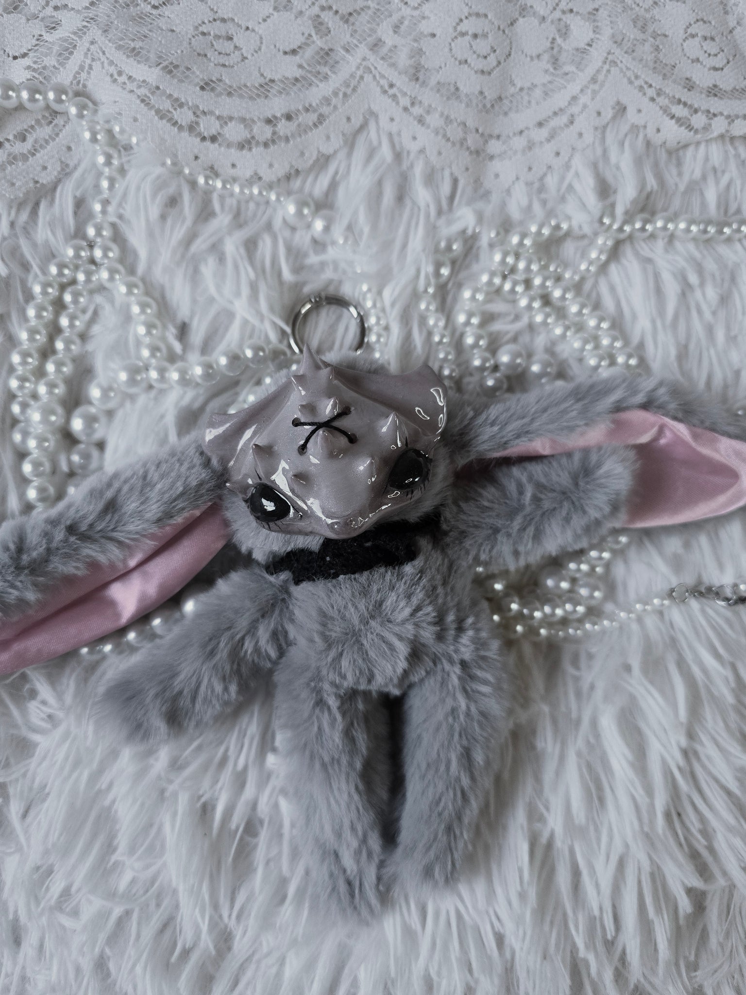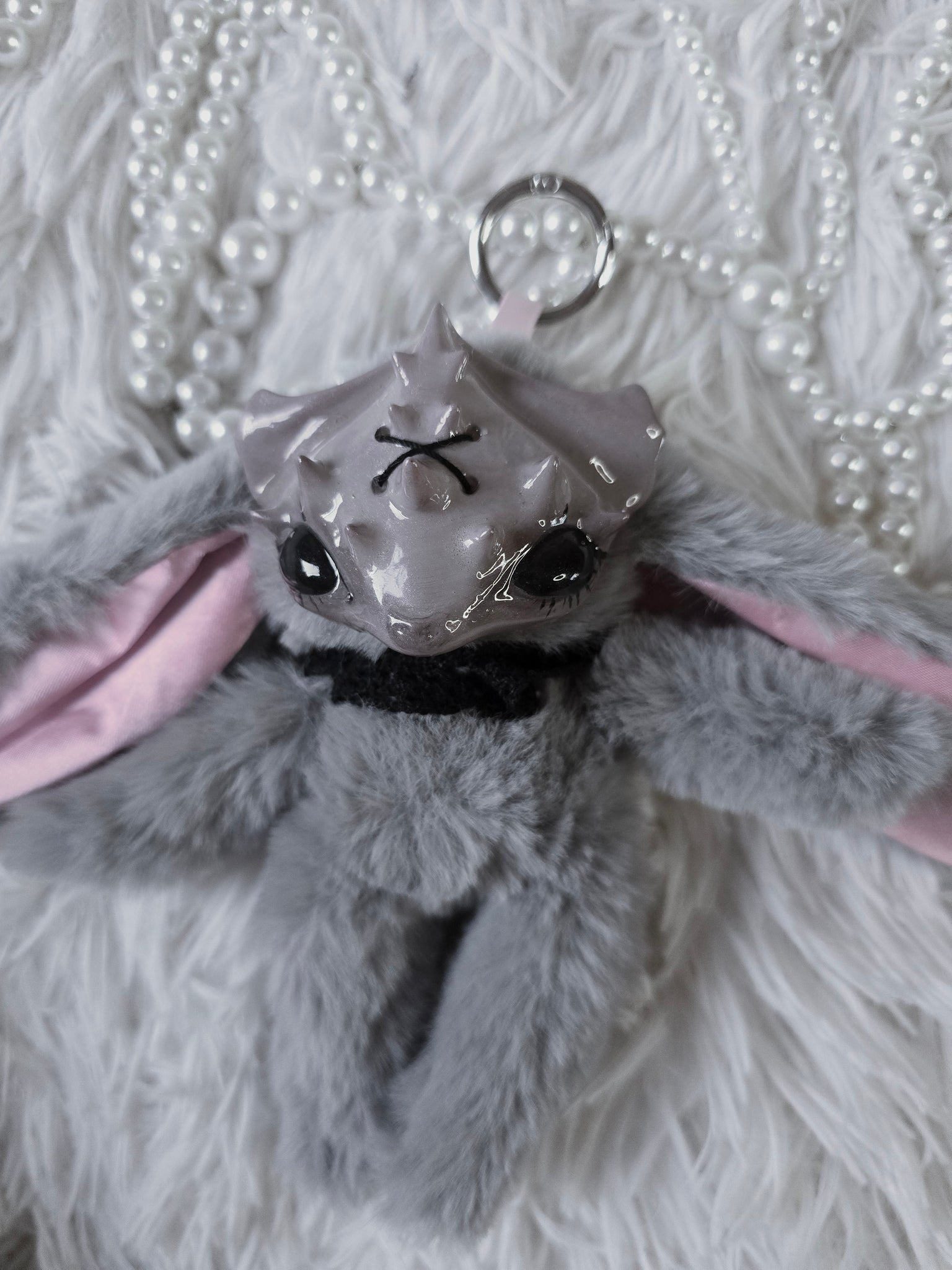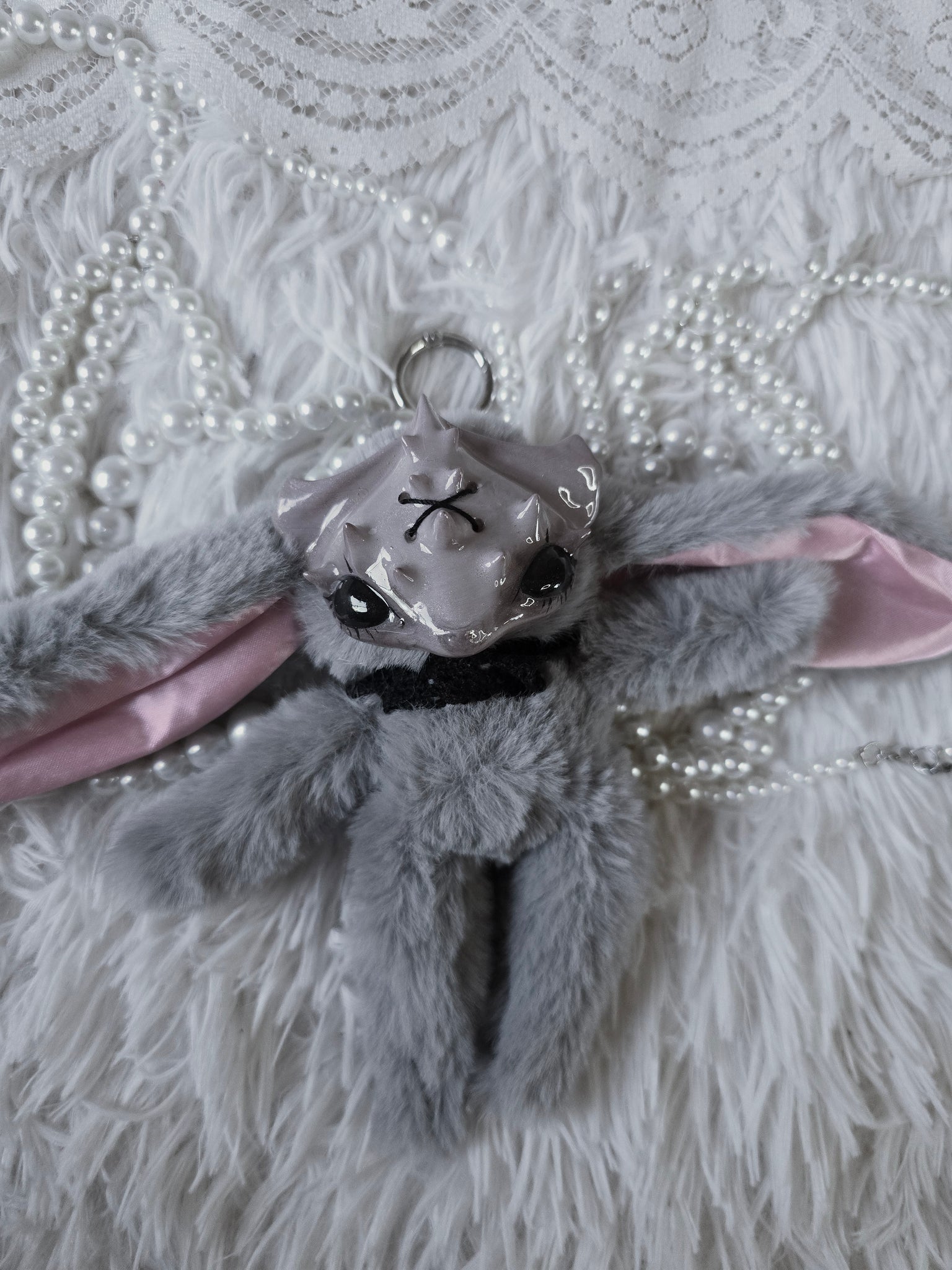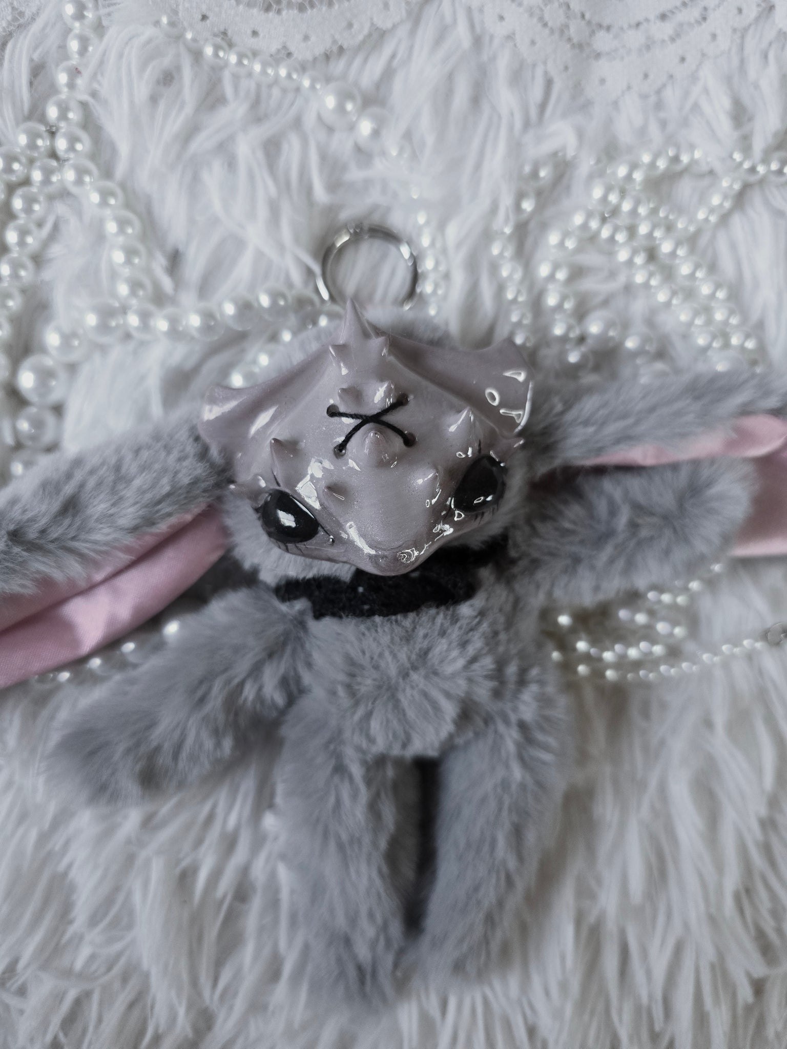 Fluffy Grey Dust Bunni 'Meep' bag charm โ™ก