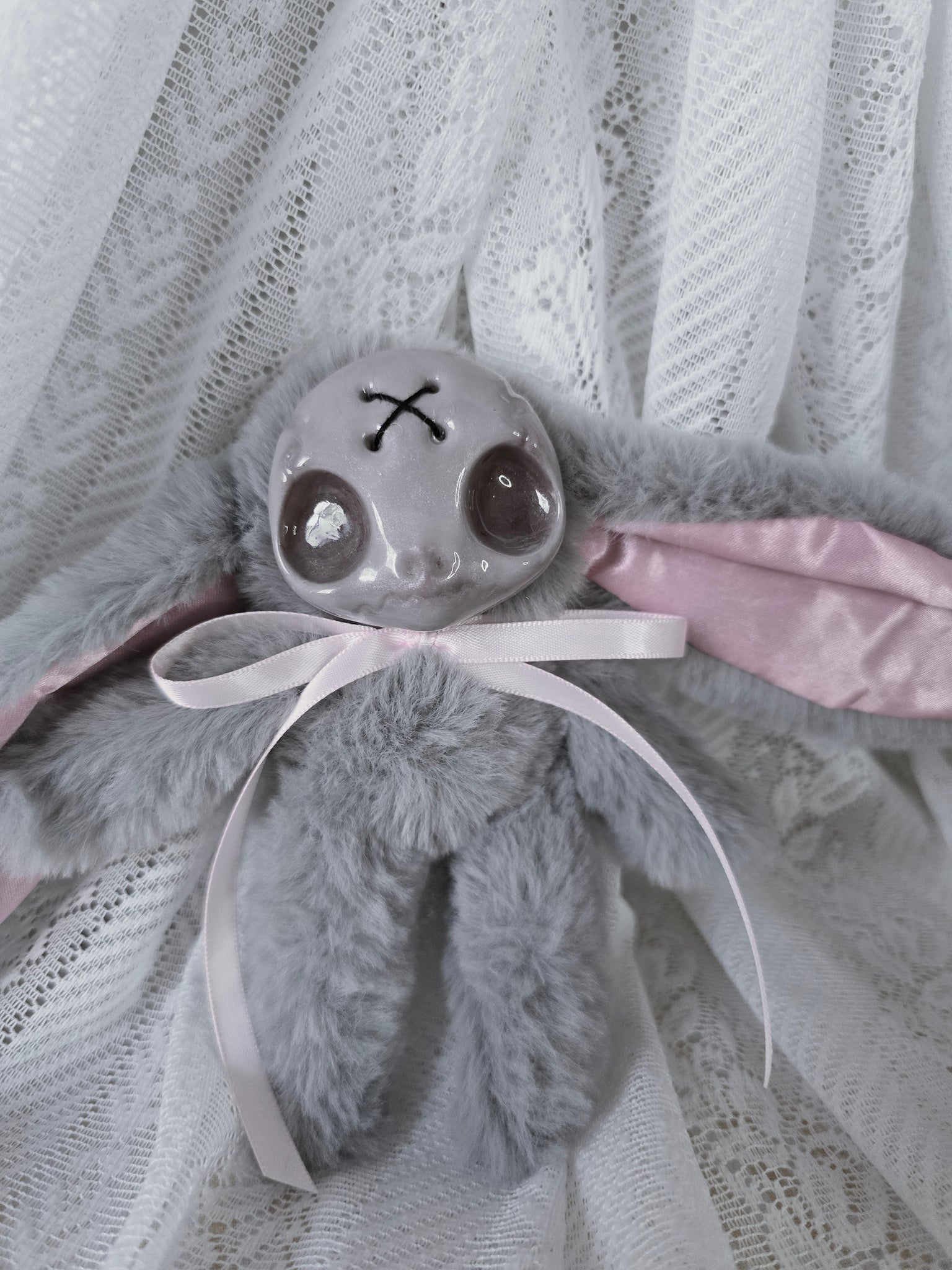 Fluffy Grey Dust Bunni 'Meep' bag charm โ™ก