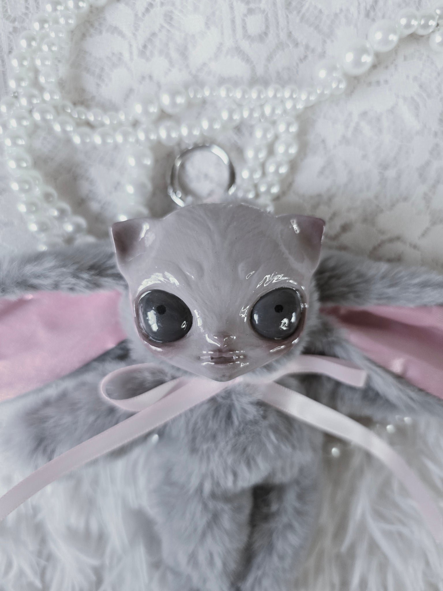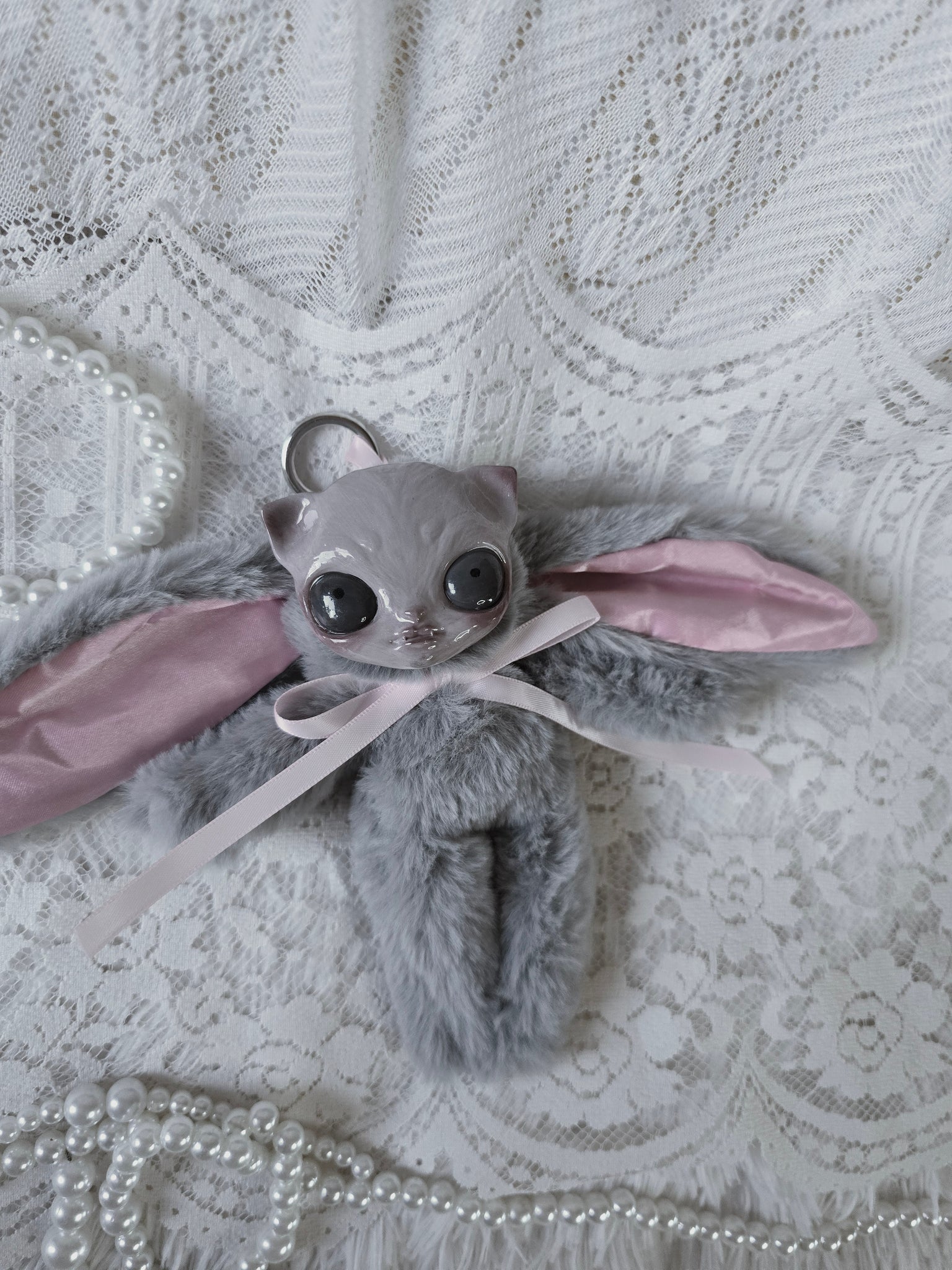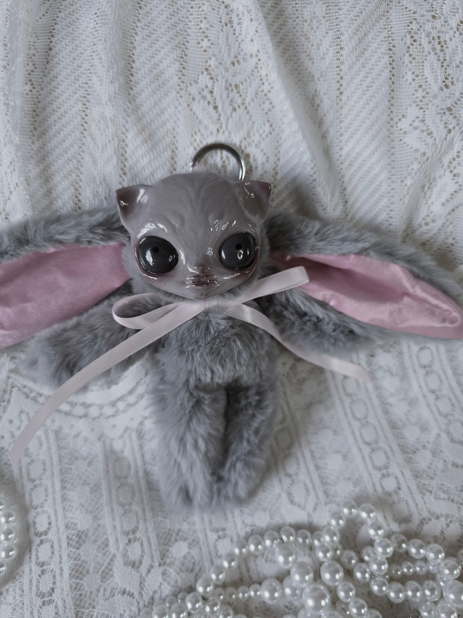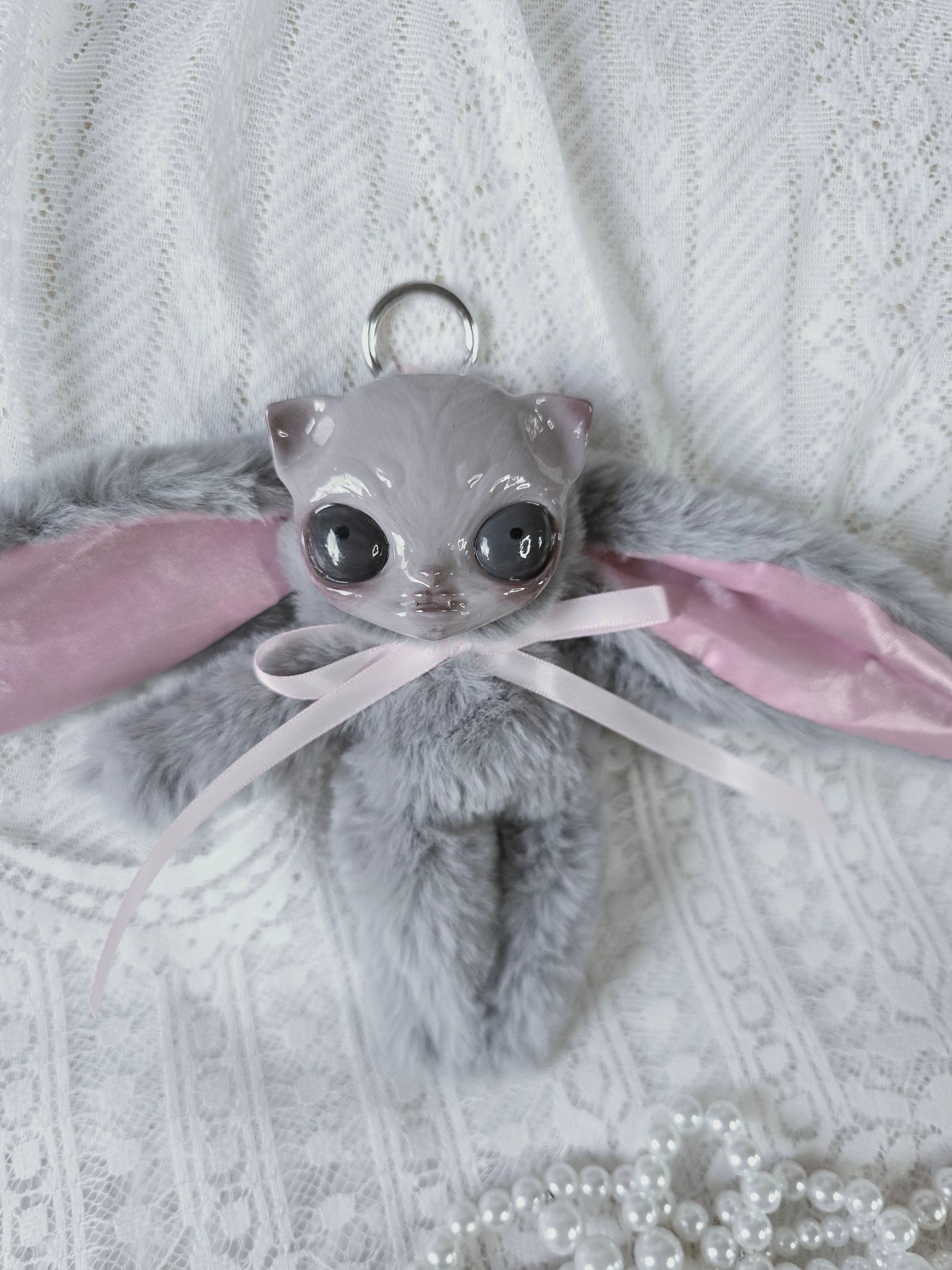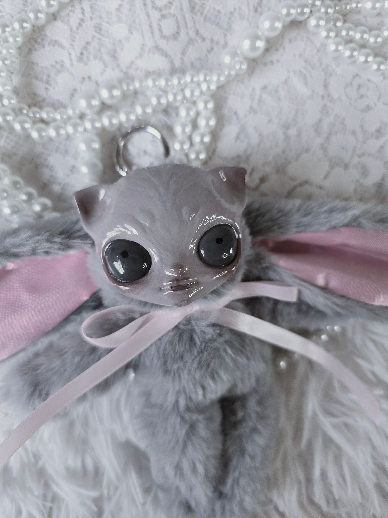 Fluffy Grey Dust Bunni 'Meep' bag charm โ™ก