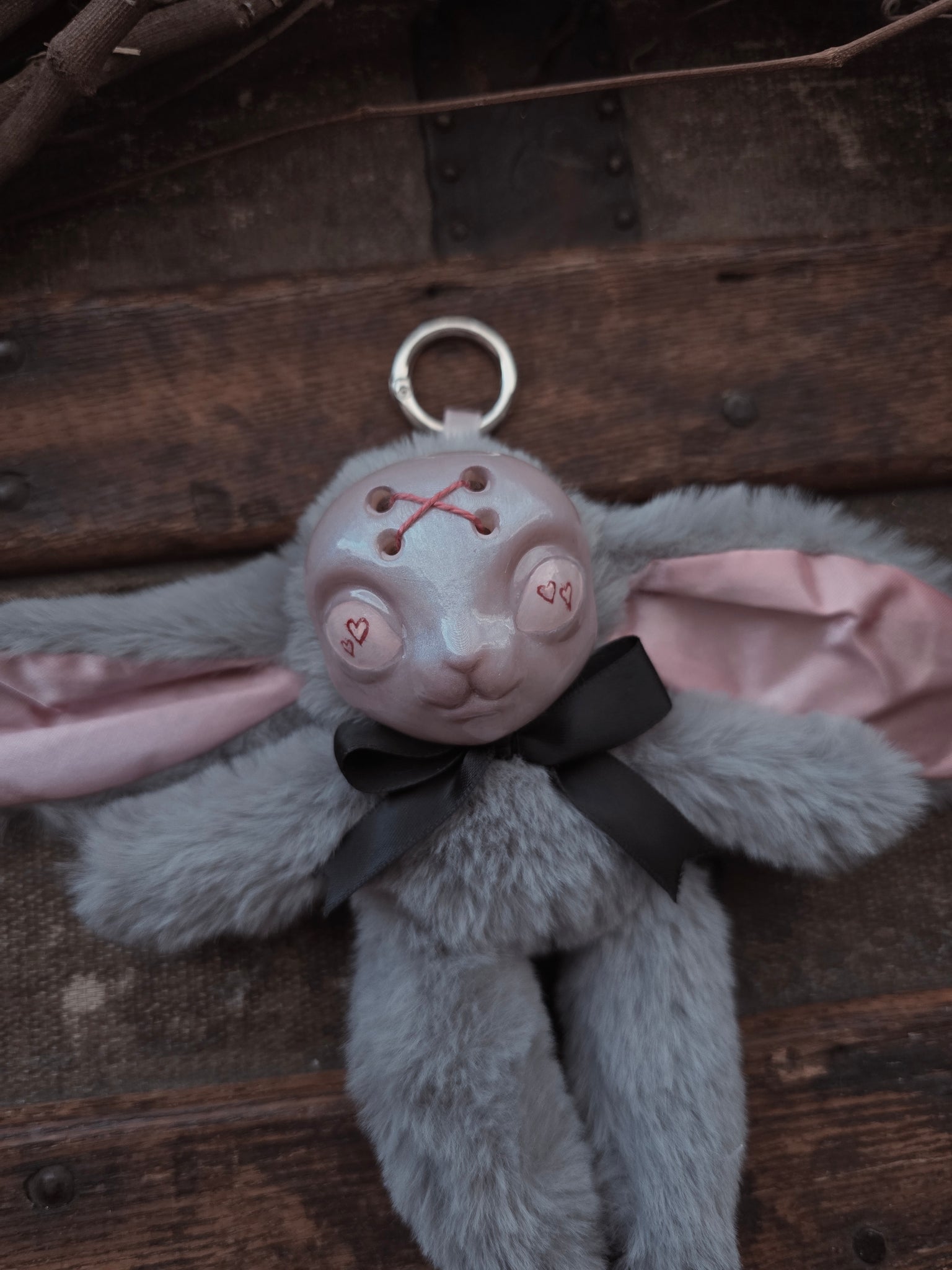 Fluffy Grey Dust Bunni 'Meep' bag charm โ™ก