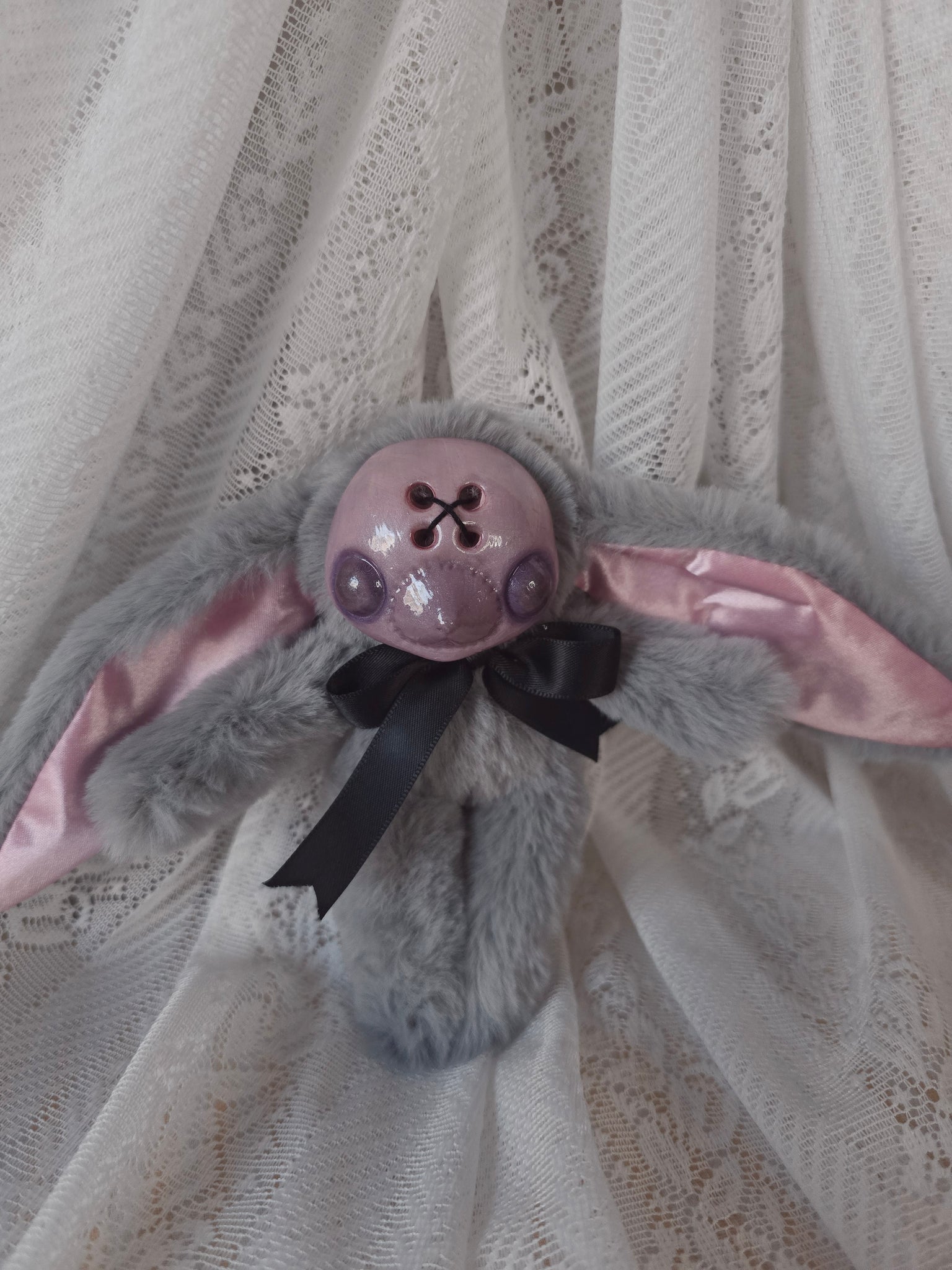 Fluffy Grey Dust Bunni 'Meep' bag charm โ™ก