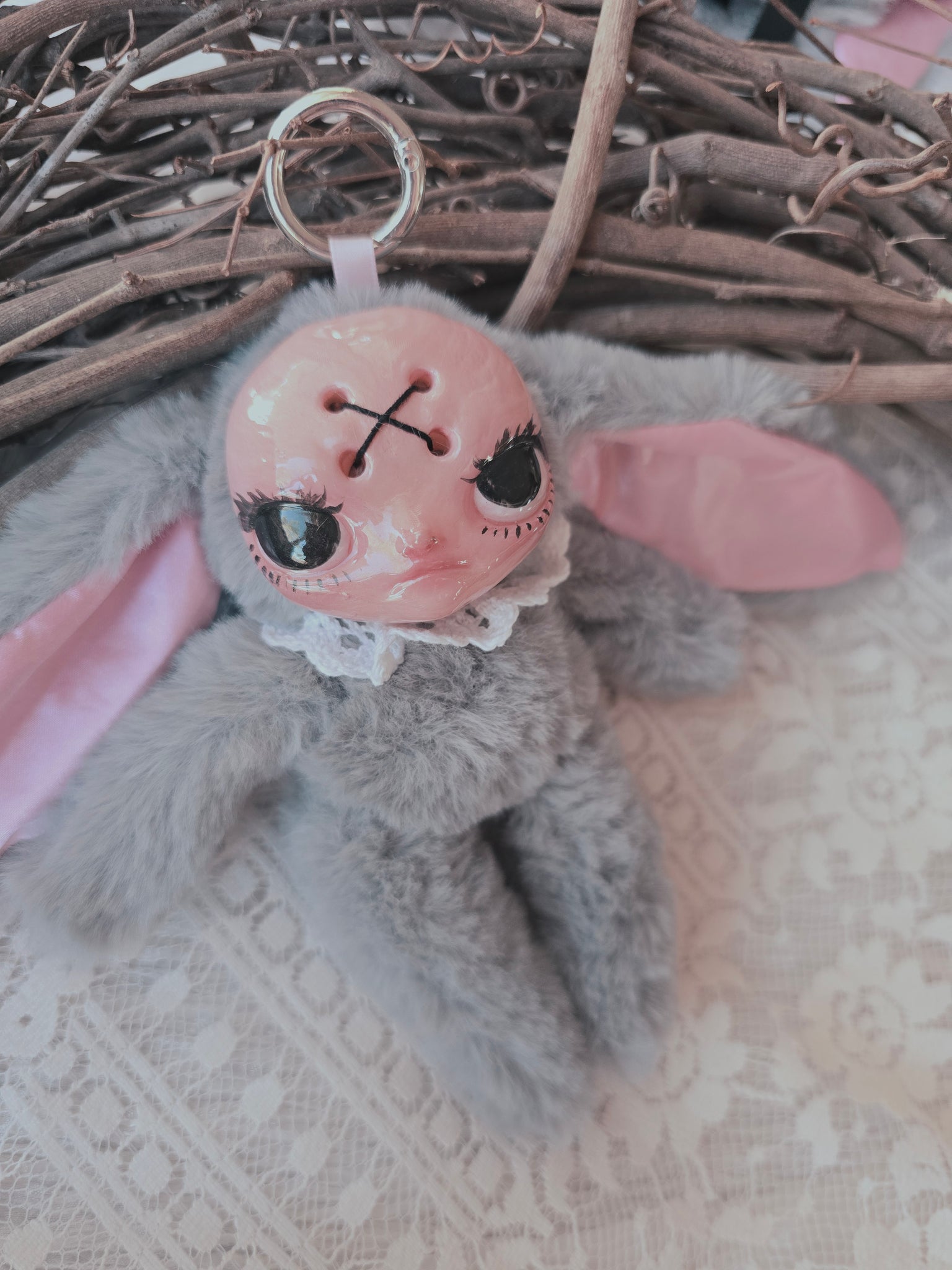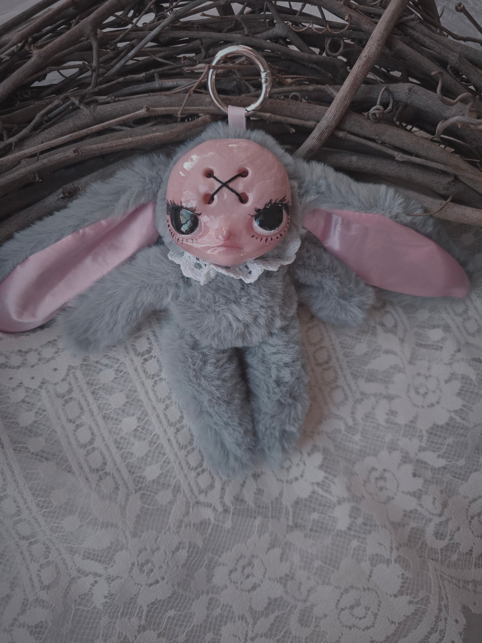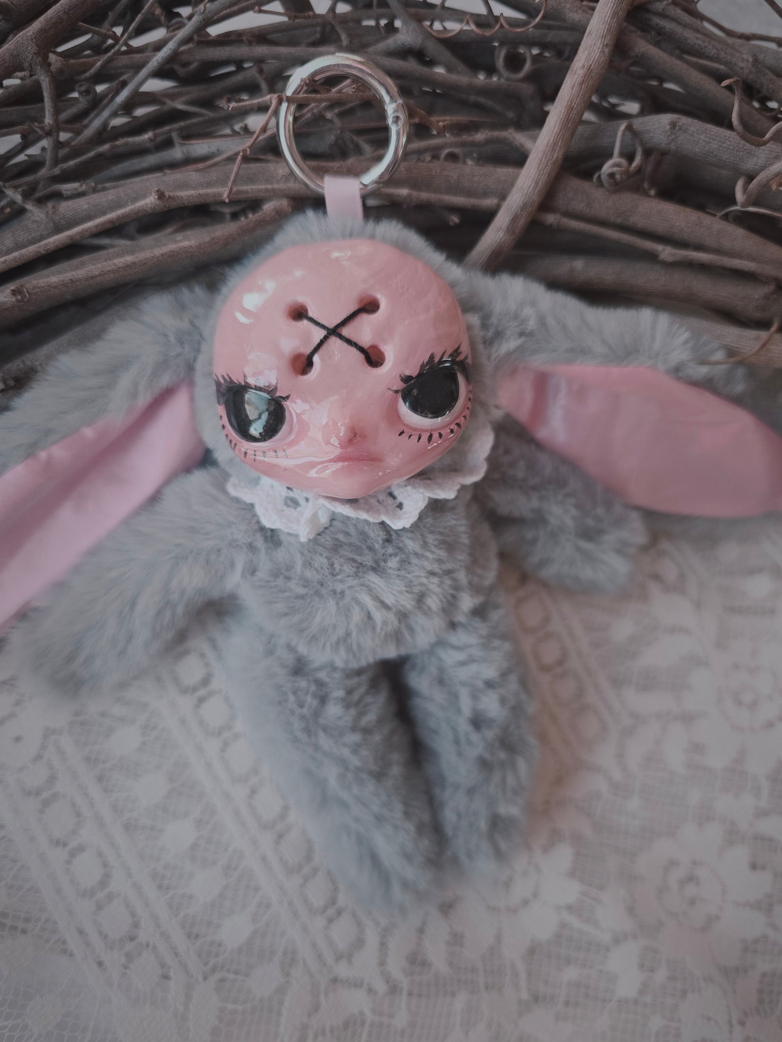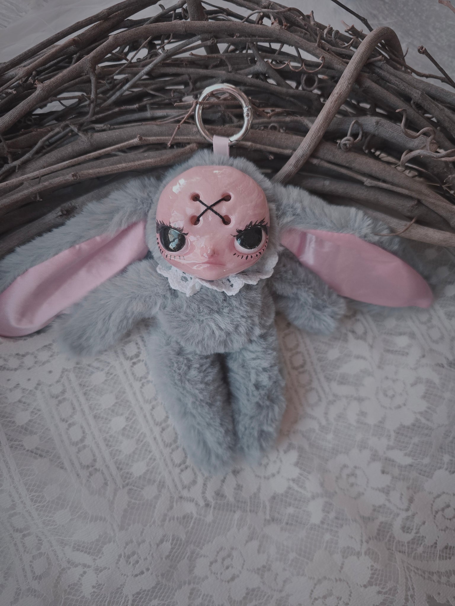 Fluffy Grey Dust Bunni 'Meep' bag charm โ™ก