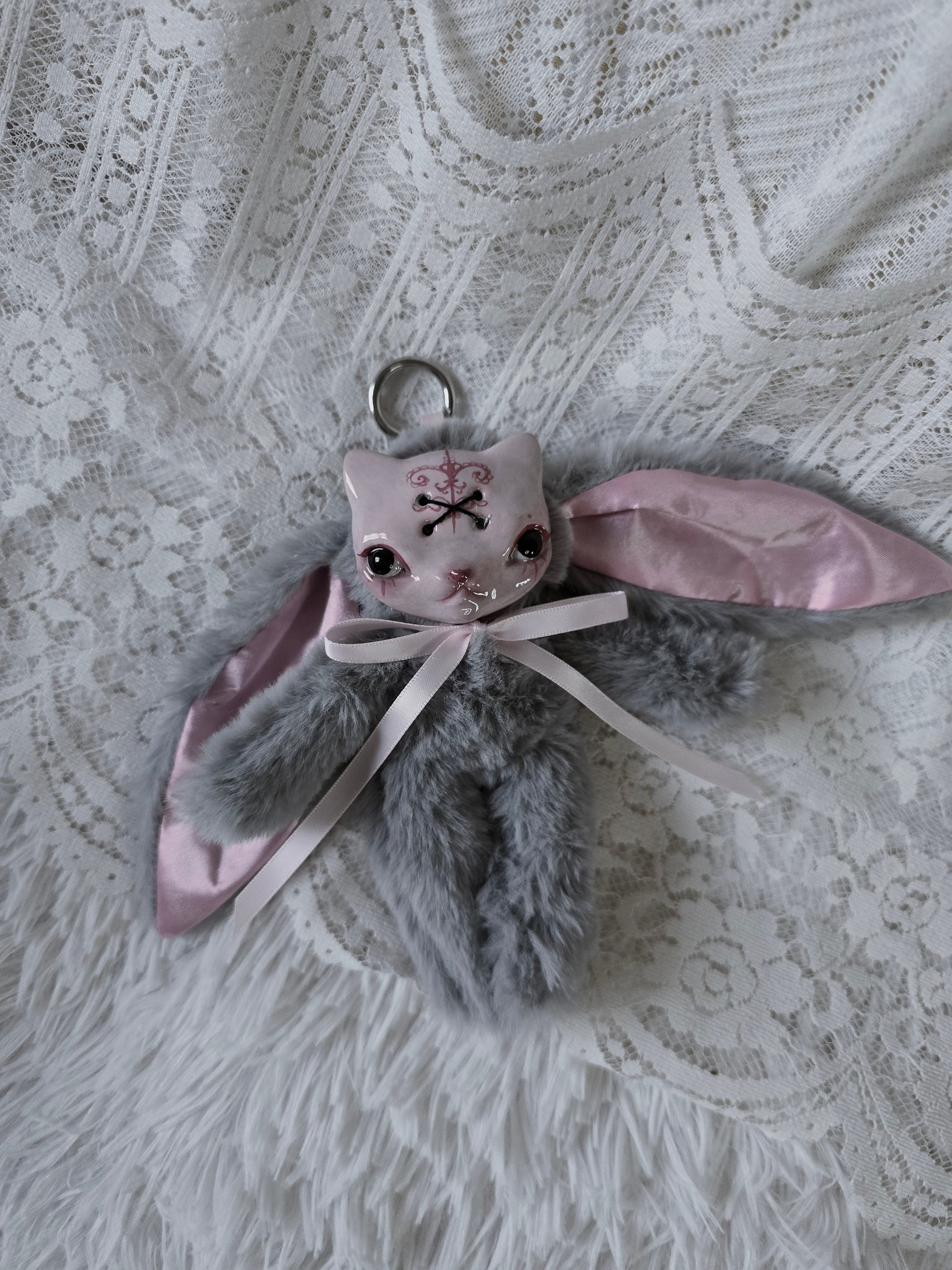 Fluffy Grey Dust Bunni 'Meep' bag charm โ™ก