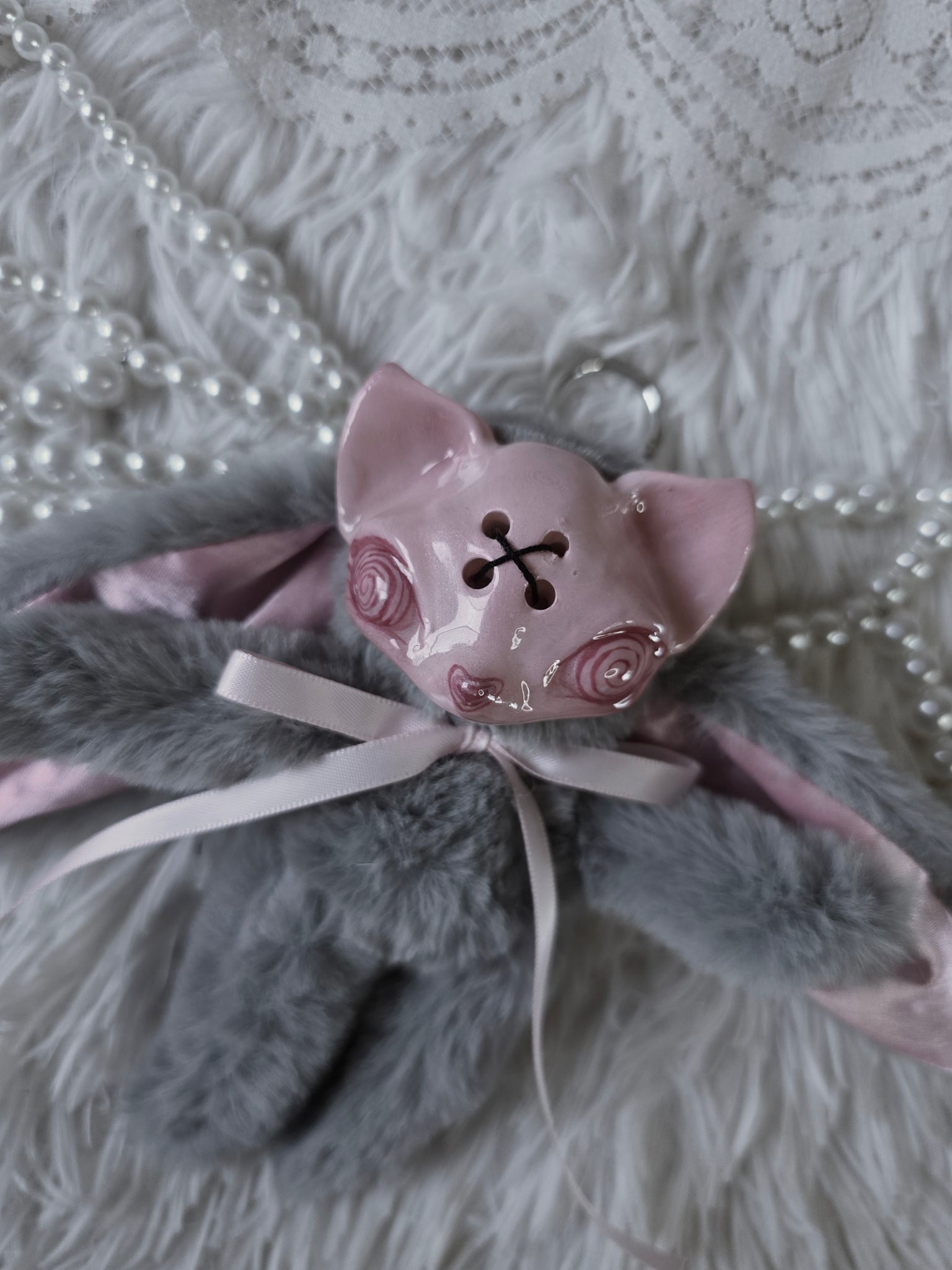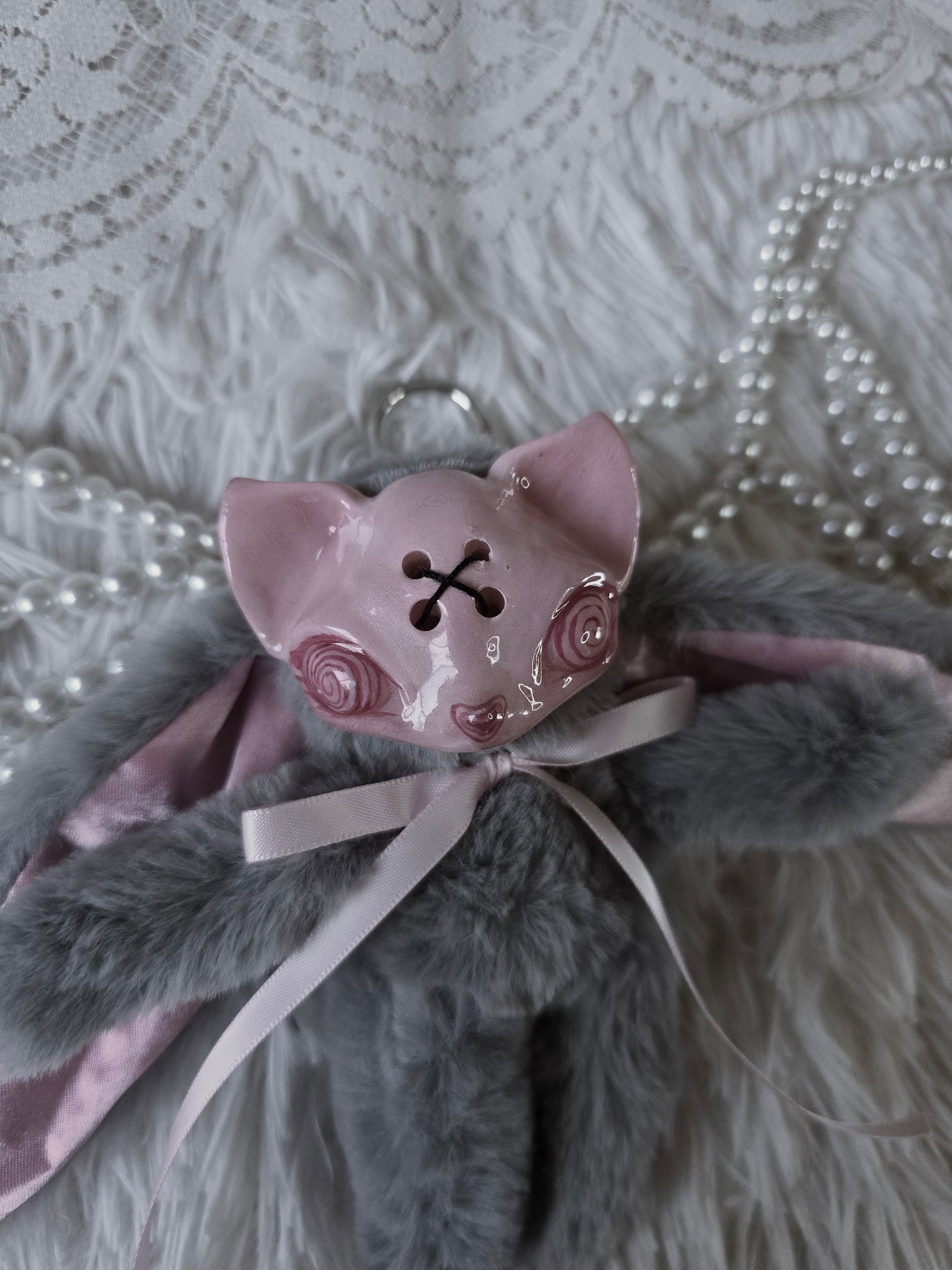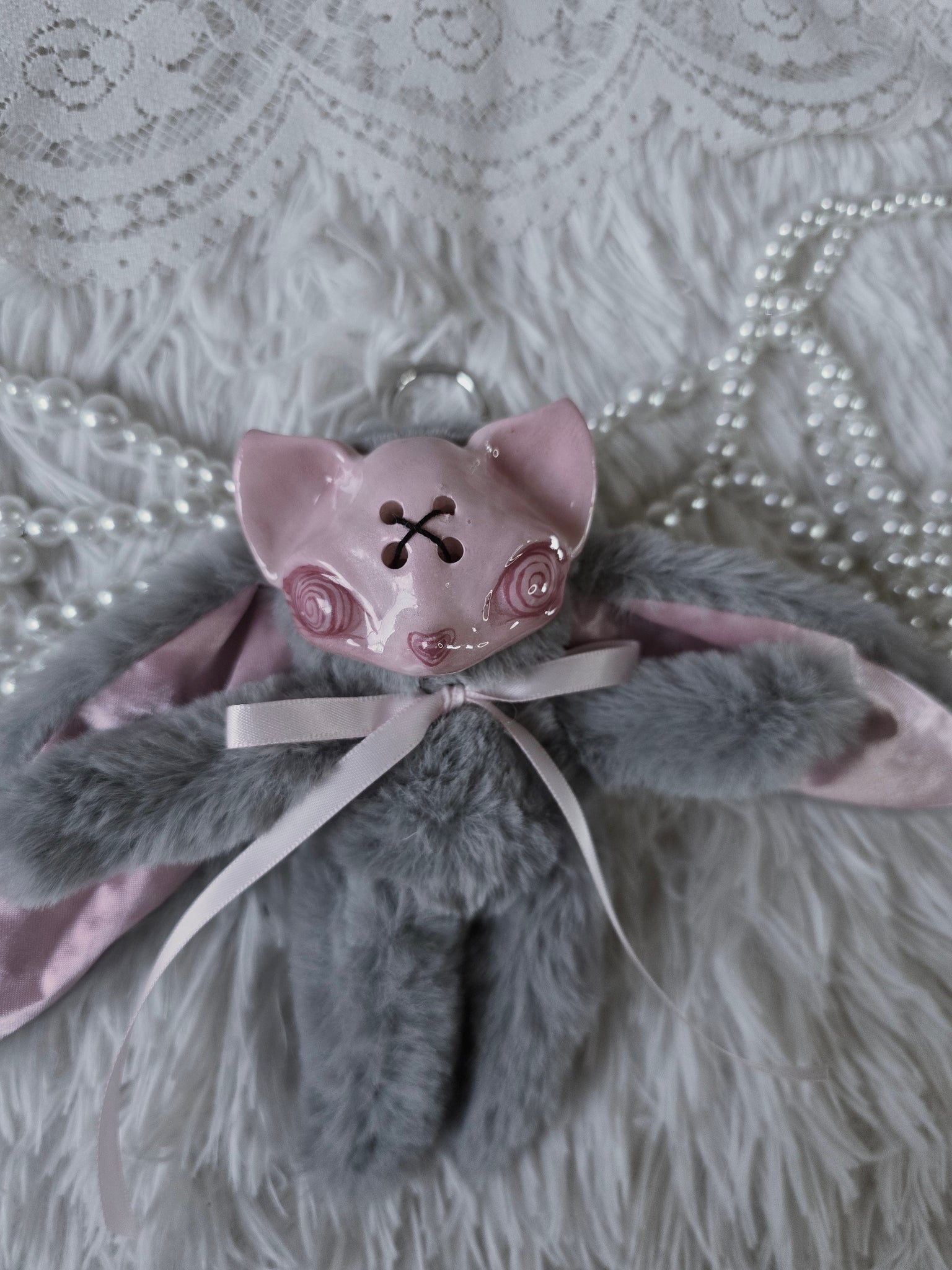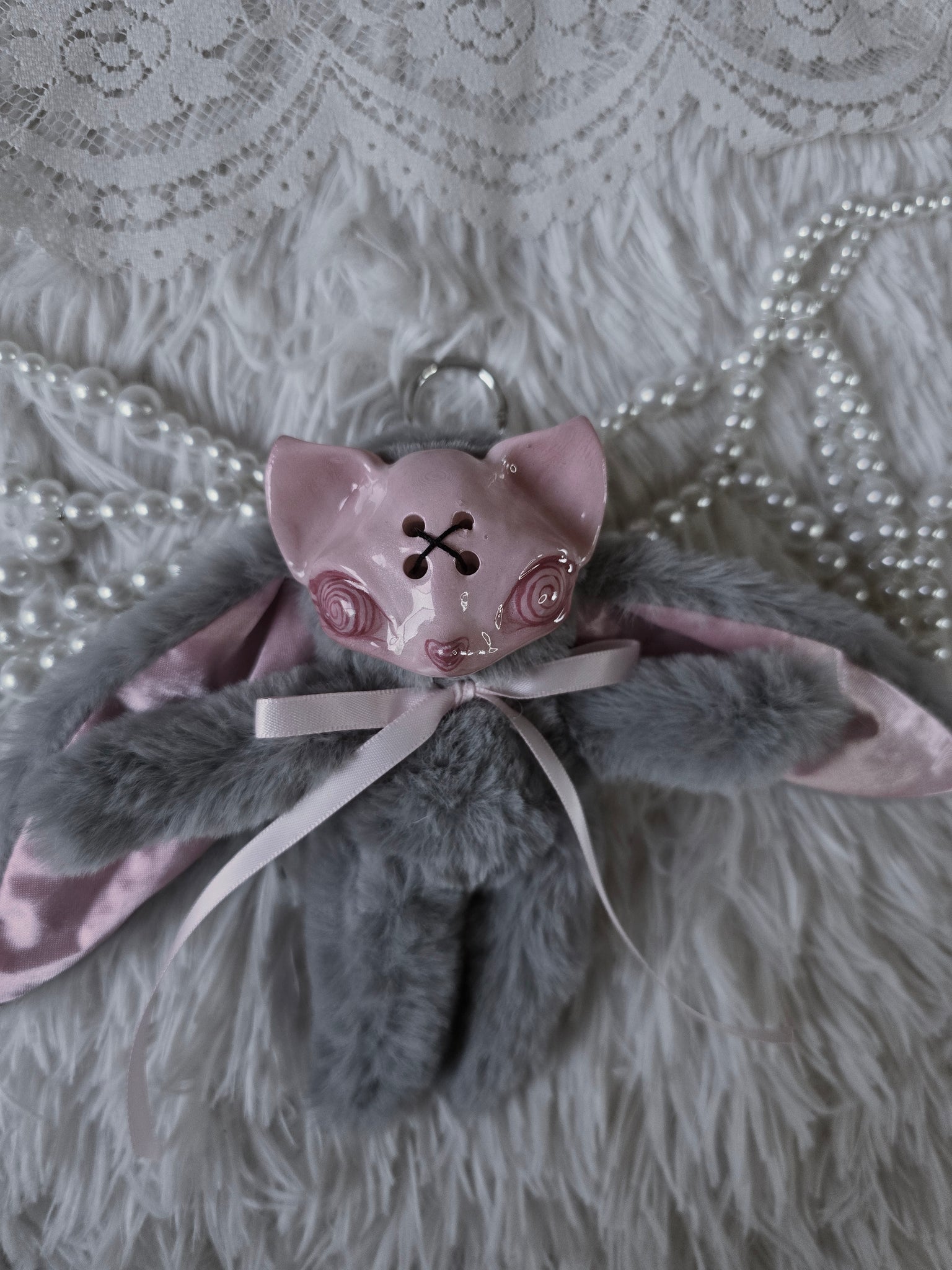 Fluffy Grey Dust Bunni 'Meep' bag charm โ™ก