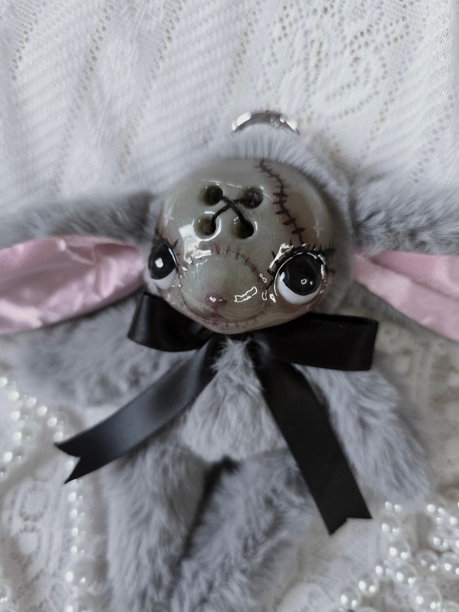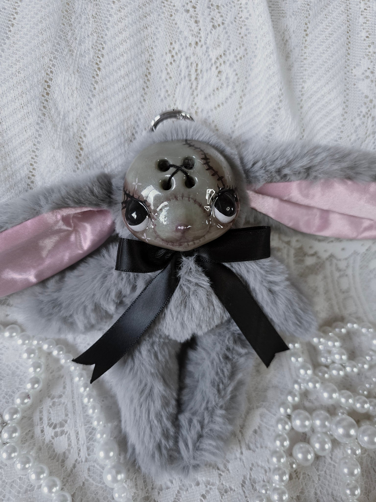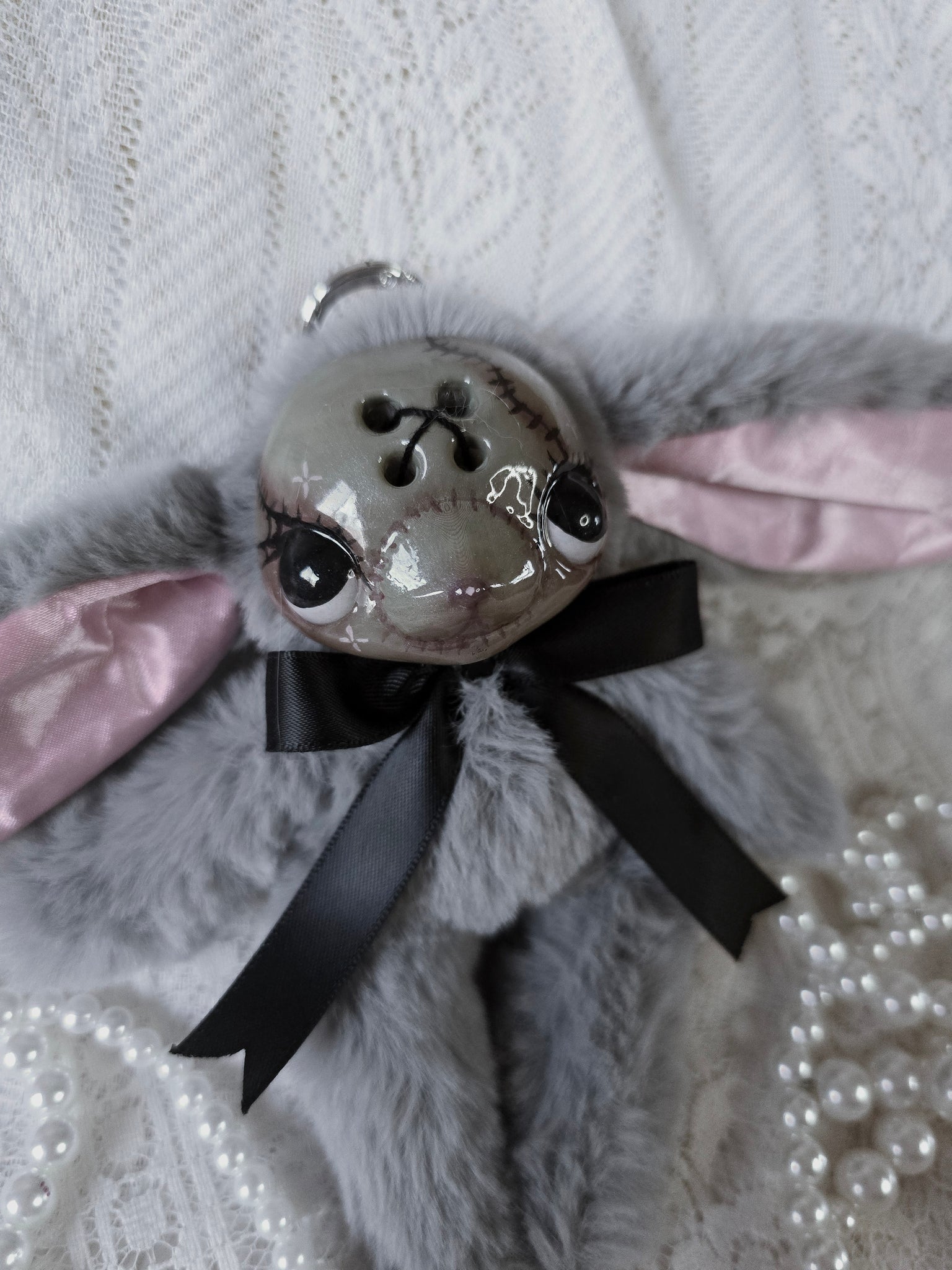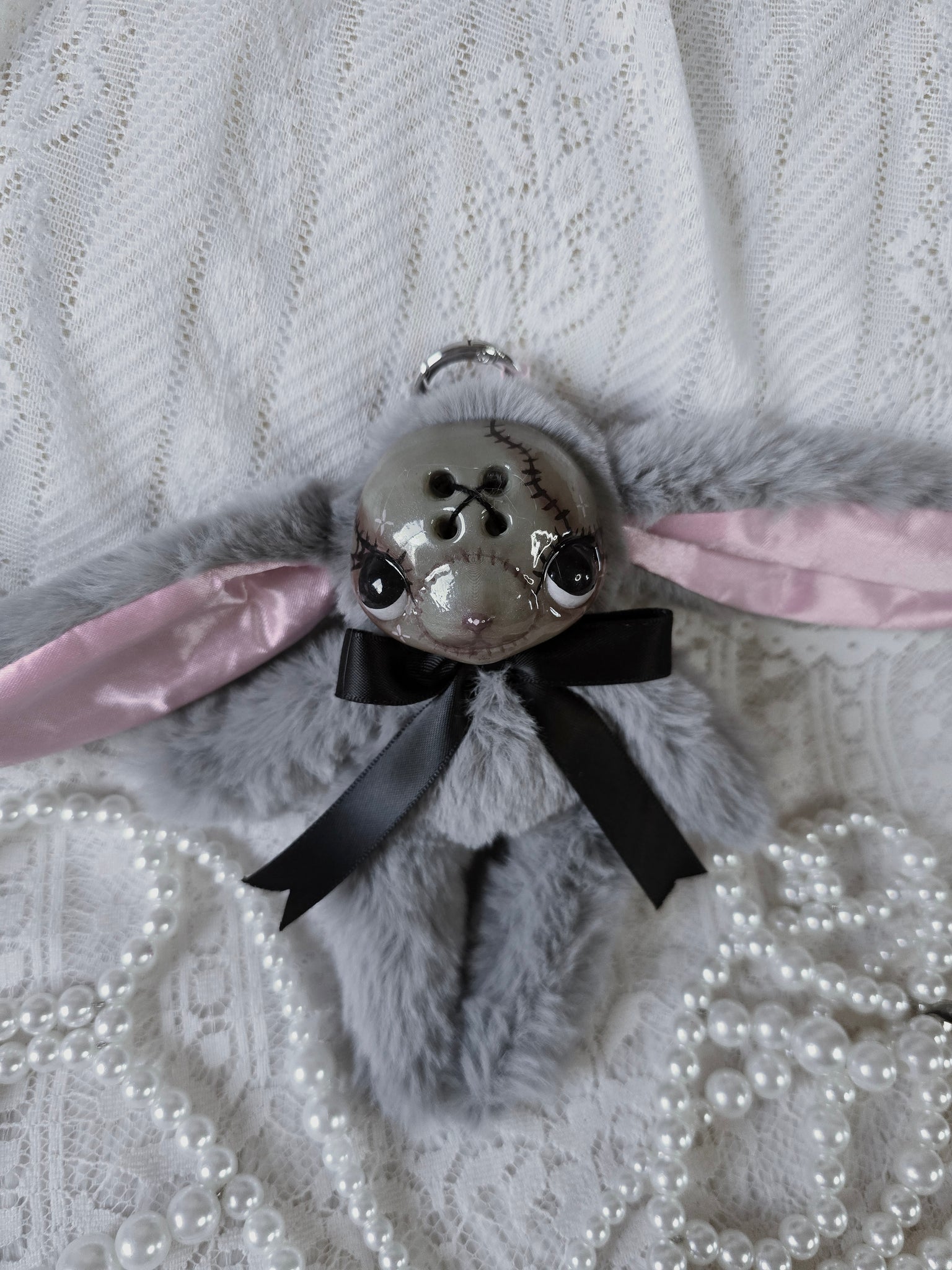 Fluffy Grey Dust Bunni 'Meep' bag charm โ™ก