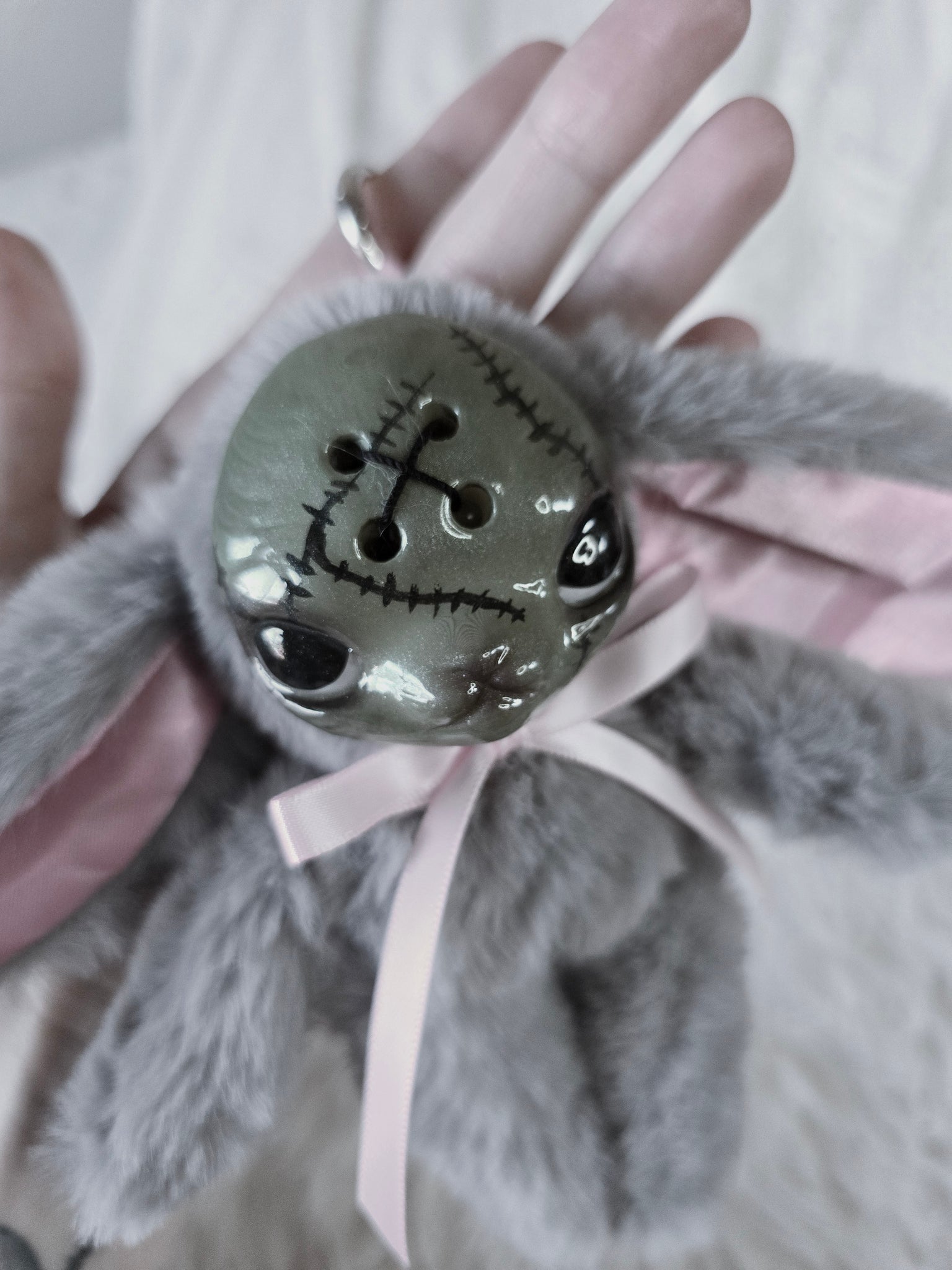 Fluffy Grey Dust Bunni 'Meep' bag charm โ™ก